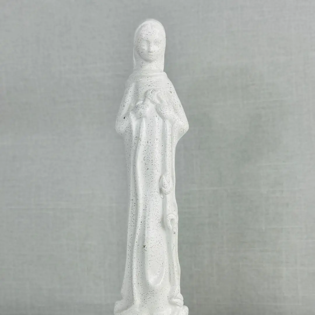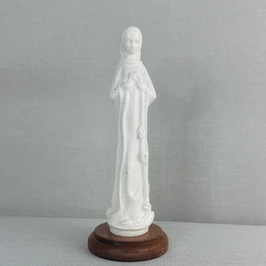 Virgin Untier of Knots with wooden base, handcrafted in clay.