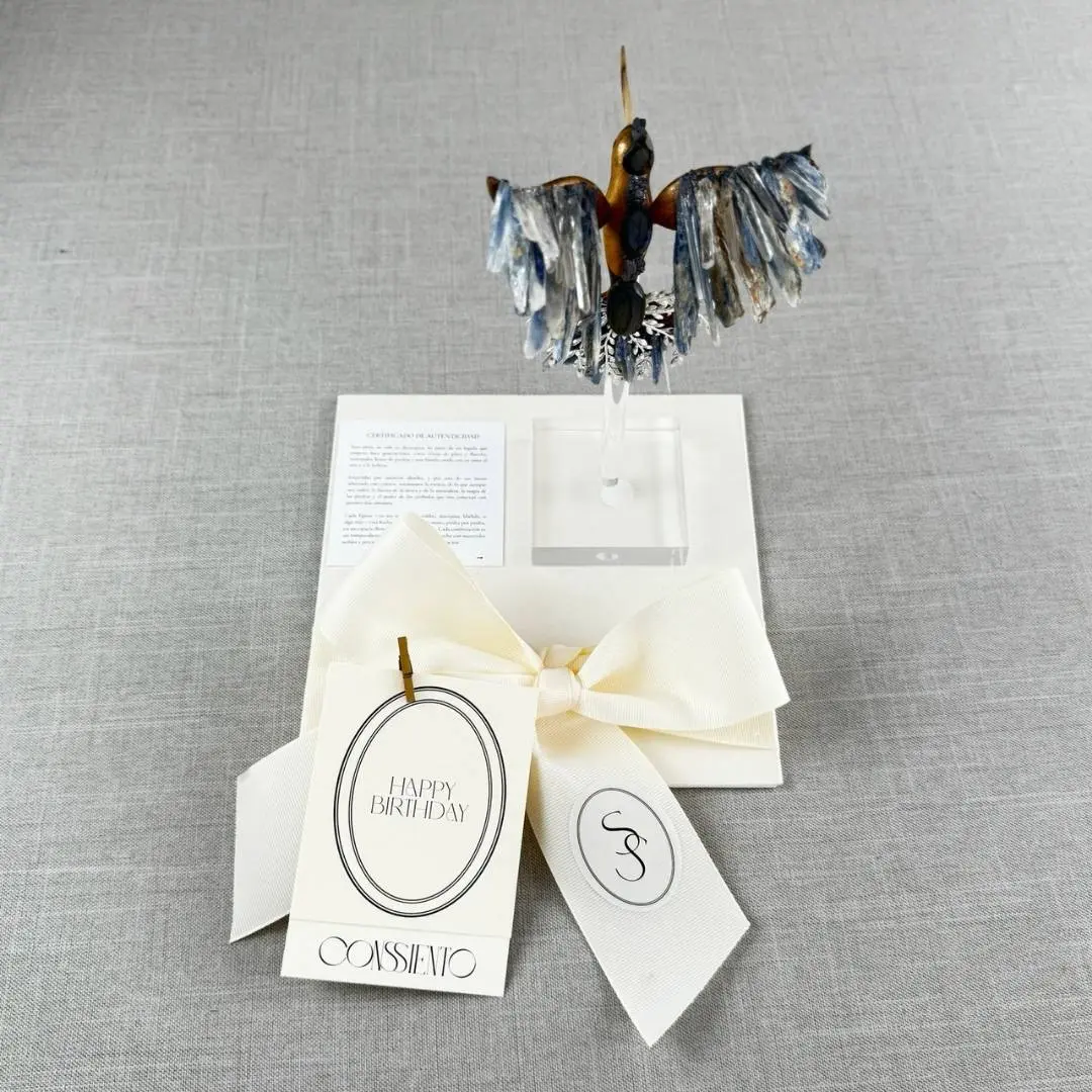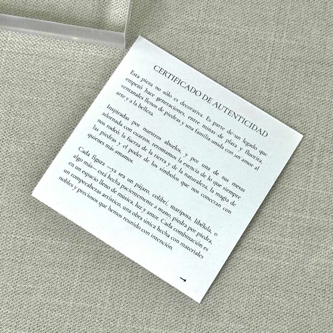 The tones of the quartz and the colors of the hummingbird may vary depending on availability, as each one is handcrafted using natural materials.